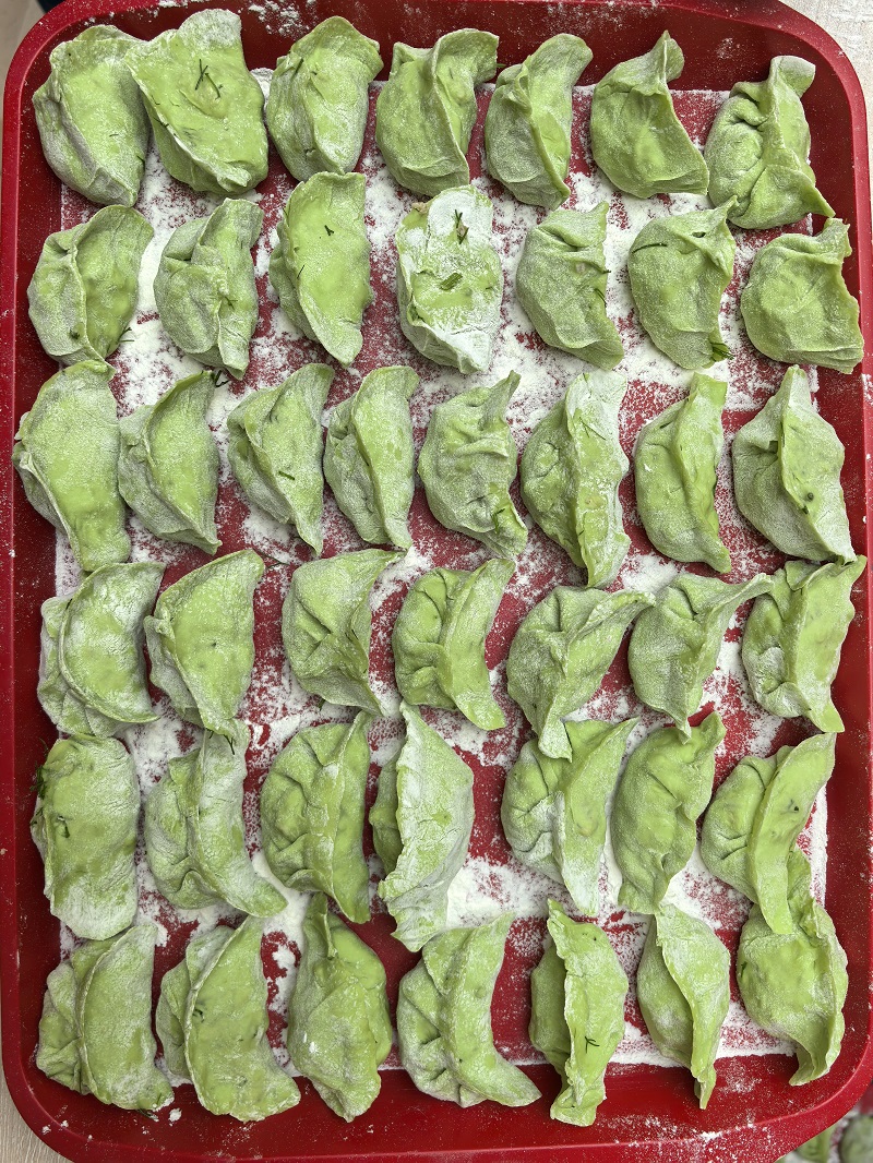 活动当天,阳光明媚,空气中弥漫着温馨的气息。厨房早早准备好了新鲜的食材,工作人员将面团和各种蔬菜汁摆放在桌上,准备制作五彩缤纷的饺子皮。绿色的菠菜皮、红色的胡萝卜皮、原白色的原味皮……色彩丰富、营养均衡的饺子皮不仅美观,还充分考虑了老年人的营养需求,体现了工作人员的细心与用心。